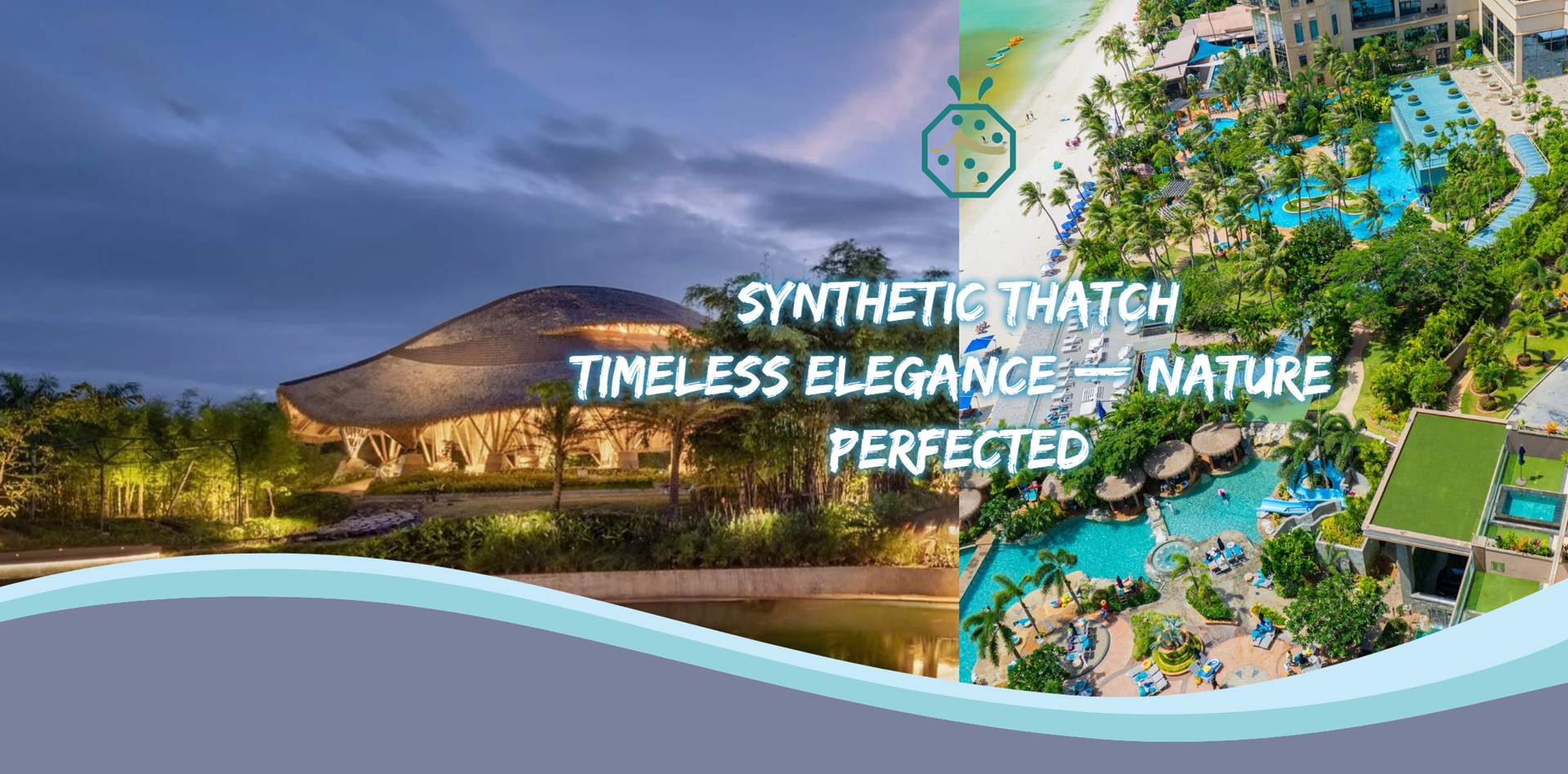 chaume synthétique, natte en bambou synthétique et poteaux en bambou artificiel