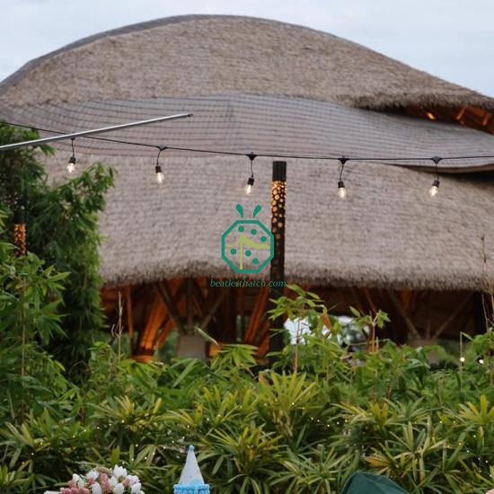 Les matériaux de toiture en chaume de nylon synthétique sont durables et peuvent durer 15 ans ou plus dans les zones balnéaires bénéficiant d'une humidité suffisante.