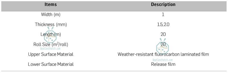Ce produit est une membrane d'étanchéité bitumineuse auto-adhésive à haute résistance aux intempéries ; il est important pour toit de chaume de région tropicale Installation. Ce produit se compose d'un adhésif bitumineux caoutchouté à forte adhérence, recouvert d'un film laminé fluorocarboné résistant aux intempéries. La surface bitumineuse caoutchoutée est munie d'un film protecteur. Ce produit est particulièrement adapté à l'étanchéité durable des toitures froides exposées.