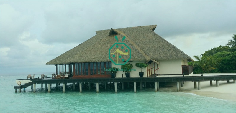 Eco-friendly PE thatch leaves roof for water bungalow buildings